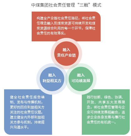 推进社会责任实践。 年初召开社会责任工作会议,听取各单位上一年度社会责任工作汇报,安排年度社会责任主要工作。开展社会责任优秀案例评选,提升所属企业社会责任意识和实践能力,鼓励有条件的重点子企业定期发布社会责任报告。加强社会责任研究,探索行业低谷时期煤炭企业履行社会责任的理念、内涵、目标和途径,促进企业更有效地履行社会责任。